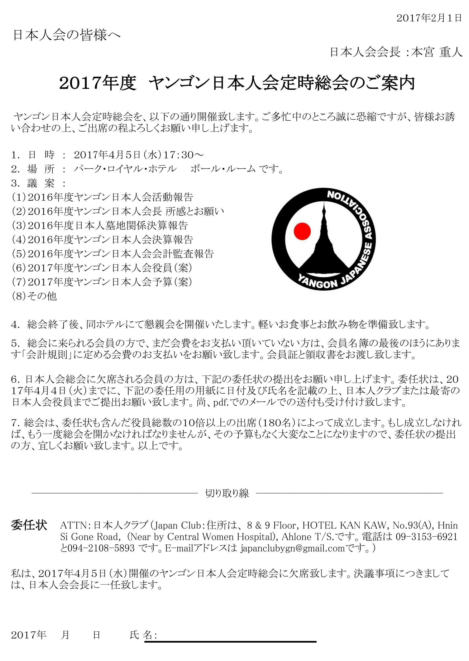 170224 – ヤンゴン日本人会